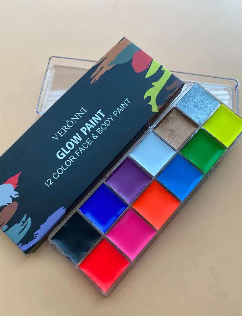12 Colors UV Glow Paint Fluorescent Neon Oil Face Body Paint Palette for Halloween Party Fancy Dress Kid Cosplay Makeup