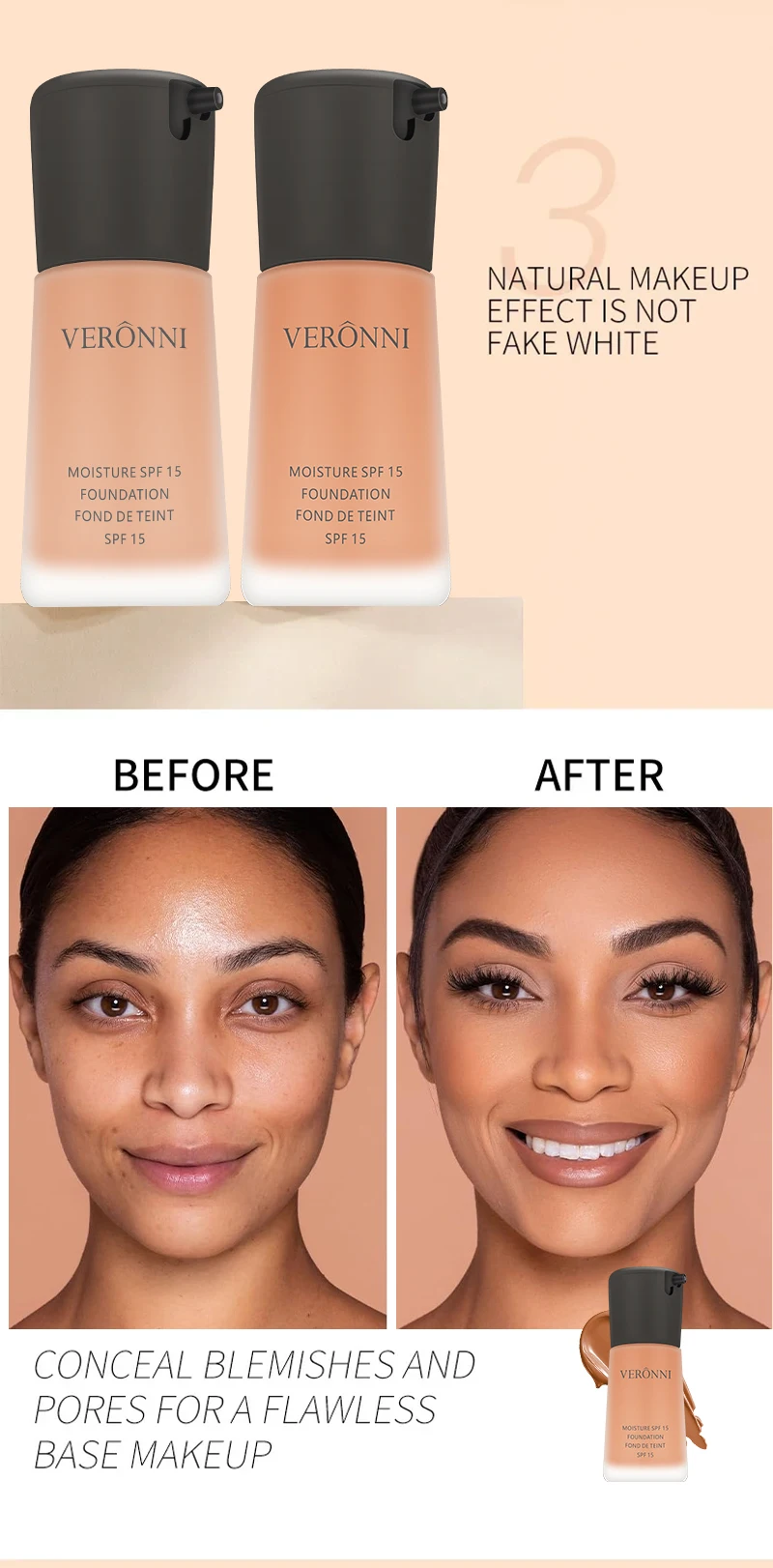 The foundation texture is light and moisturizing, moisturizing and concealing, even skin tone, moisturizing skin, long-lasting isolation.