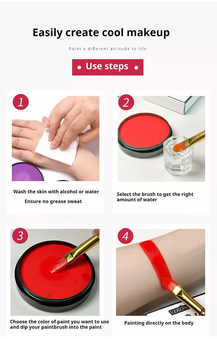 Water Monochromatic Face Body Painting Palette Makeup Body Partie 10 Brushes and Palettes Set 30G
